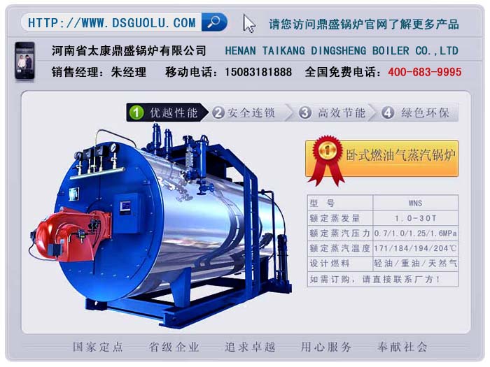 【河南太康鼎盛鍋爐有限公司】產(chǎn)品名稱:6噸WNS-臥式燃油/天然氣蒸汽鍋爐生產(chǎn)范圍:0.5噸-20噸壓力范圍:0.4/0.7/1.25/1.6MPa(0.4MPa即4公斤壓力)產(chǎn)品結(jié)構(gòu):臥式快裝內(nèi)燃三…