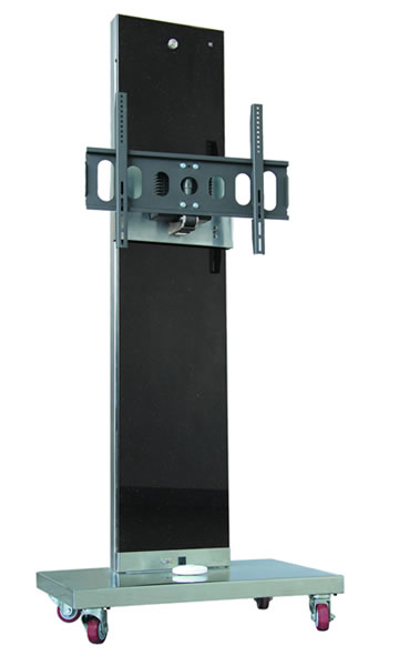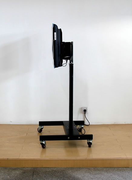 電動遙控電視機機架——移動式移動式電視機機架是在導軌式電視機機架的基礎上在導軌下端安裝了帶有輪子的可移動平臺,動作及控制方式和導軌式一致,可實現(xiàn)在1100毫米范圍內的升降,左右36度的角度調整以及前后15度的俯仰調整,所有動作均為遙控操作。此款支架還可根據需要隨意改變位置。支架底座還附有可伸縮的電腦托架,正面裝飾板可選用噴繪玻璃,印花樹脂板等材料。是一款專為學校教學,電視會議場所以及商場,展覽館等臨時需要可視設備的工作需要而開發(fā)研制的產品。