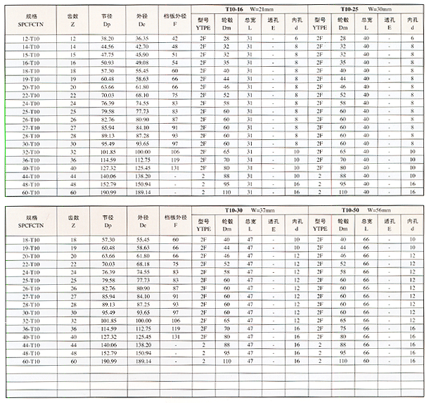 T10型同步帶輪規(guī)格型號(hào)尺寸表
