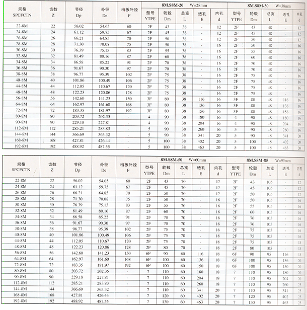 HTD8M型同步帶輪規(guī)格型號(hào)尺寸表