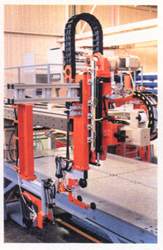 這臺頂部進出雙軸機械手,使用交流電機驅(qū)動拾取汽車部件。電機放置在垂直軸線上,并有氣動油缸用以平衡產(chǎn)品重量。