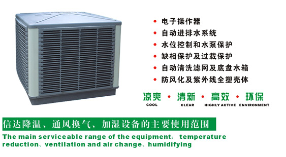 我企業(yè)專業(yè)生產(chǎn)的系列空氣調(diào)節(jié)設(shè)備用于高溫、干燥、悶熱、有粉塵、有異味,且對人體健康產(chǎn)生不良影響的生產(chǎn)制造車間或工作娛樂場所。信達降溫、通風(fēng)換氣、設(shè)備的主要使用范圍: