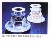 該材料只有75%密度,并不如注塑pc一般強(qiáng)硬。但由于這個(gè)特性,它能勝任制造熔模鑄造的模芯(當(dāng)遇熱時(shí),模芯 膨脹會(huì)被模體的疏孔抵消);它有著堅(jiān)固而耐溫的特性,比傳統(tǒng)蠟材模芯更方便打磨、存放及運(yùn)送(嚴(yán)寒時(shí)不會(huì)脆軟, 炎熱時(shí)不會(huì)軟化變形),且能做到極細(xì)微輪廓及薄壁(小于1mm)。