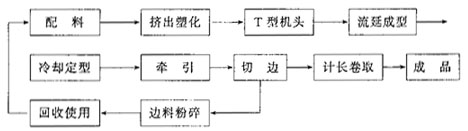 目前生產(chǎn)pp片材的生產(chǎn)工藝路線主要采用t型機頭流延法,其工藝路線如下: