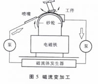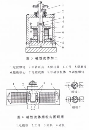 1、磁粒光整加工磷粒光整加工(Magnetic Abrasive Finishing,簡稱MAF)是利用磁場作用進(jìn)行材料微去除的表面加工方法,它能高效、快速地對(duì)各種材料、尺寸和結(jié)構(gòu)的零件進(jìn)行光整加工,是一種投資少、效率高、用途廣、質(zhì)量好的表面加工方法。 (1)磁粒光整加工的原理所謂磁粒光整加工。就是利用磁場通過強(qiáng)磁性介質(zhì)產(chǎn)生的磁作用力作用到磁粒上,使磁粒對(duì)工件進(jìn)行微切削加工的方法。圖1為圓柱表面磁粒光整加工原理圖,將工件放置在由電磁鐵N極和S極構(gòu)成的磁場中,在電磁鐵與工件之間填充磁性磨粒,當(dāng)對(duì)電磁鐵通以直流電時(shí),在N、S兩極之間便產(chǎn)生磁場,磁性磨粒被磁極吸引,在磁力的作用下,磁粒沿磁力線整齊地排列成刷子狀,并對(duì)工件表面形成一定的壓力,當(dāng)磁極與工件之間產(chǎn)生相對(duì)運(yùn)動(dòng)時(shí),磁刷掃過工件表面,從而對(duì)工件待加工表面進(jìn)行研磨、去毛刺、提高工件表面硬度等過程的光整加工。該加工方法改善了工件表面的應(yīng)力分布狀態(tài),延長了工件的使用壽命。磁性磨粒由純鐵粉(Fe)作載體,加入一些Al2O3或SiC等磨;旌现瞥。目前磁粒光整加工按磁場的形式可以劃分為兩大類,第一類磁場為恒磁場,依靠磁場與工件表面之間相對(duì)移動(dòng)來實(shí)現(xiàn)加工;第二類則是采用交變或旋轉(zhuǎn)磁場來產(chǎn)生磁性磨粒與加工面之間的相對(duì)運(yùn)動(dòng)實(shí)現(xiàn)材料的微去陳加工。 (2)磁粒光整加工特點(diǎn) 自銳性好,加工能力強(qiáng),效率高。磁磨溫升小,工件變形小。切削深度小,加工表面光潔平整。工件表面交變勵(lì)磁,提高了工件的物理力學(xué)性能。磨料刷的形狀隨加工工件的形狀變化而變化,表現(xiàn)出極好的柔性和自適應(yīng)性,因此不僅可用于圓柱和平面加工,還可進(jìn)行異形表面和自由曲面的光整加工。加工力可以通過控制磁場強(qiáng)度進(jìn)行控制,加工過程容易實(shí)現(xiàn)自動(dòng)化。磁性磨粒更換迅速,不污染環(huán)境。既可加工鐵磁性材料,也可對(duì)非鐵磁性材料進(jìn)行光整加工。 (3)磁粒光整加工的應(yīng)用 磁粒光整加工適用于各個(gè)領(lǐng)域精密零件的研磨、拋光和去毛刺。磁性磨粒加工不僅可用于以鐵和碳素鋼合金鋼等磁性材料制作的零件,也適用于加工非磁性材料如黃銅、不銹鋼和鈦合金、陶瓷以及硅片等,材料去除率明顯高于一般研磨工藝,表面粗糙度值可達(dá)Ra=O.01um。 (4)磁粒光整加工關(guān)鍵技術(shù) 磁粒光整加工自動(dòng)化研究及面向模具型腔表面拋光的光整加工裝置的開發(fā)。近年來,由于數(shù)控機(jī)床的cAD/cAM系統(tǒng)的引進(jìn),使得多數(shù)模具制造實(shí)現(xiàn)程序自動(dòng)化,但模具型腔表面的精加工還必須由技術(shù)熟練的工人進(jìn)行手工完成.仍未實(shí)現(xiàn)3D表面的精加工。因此,致力于模具型腔表面自動(dòng)化光整加工具有重要的意義。東北大學(xué)利用三桿五自由度并聯(lián)機(jī)床對(duì)復(fù)雜模具型腔表面進(jìn)行自動(dòng)化磁粒光整加工進(jìn)行了有益的嘗試,并取得了一定的效果。 磁性磨粒的制備及新型磁性磨粒的開發(fā)。目前,我國制作的磁性磨粒成本較高、使用壽命短、加工效率低,磁性材料與磨抖之間的可溶性差,磁粒的磁化率偏低。因此需要研制新型磁性磨粒,力求降低成本,提高使用壽命,增強(qiáng)切削能力。最近,鐵磁相與磨粒相機(jī)械混合制備磁性磨粒的方法,不僅降低了成本,而且得到Ra=0.042um的超光滑的光整加工表面。 磁粒光整加工工藝的研究。磁粒光整加工不僅受工件材質(zhì)、工件尺寸的影響,也受到工件形狀和表面去除量的限制,對(duì)不同位置角度,不同曲率的表面,其去除規(guī)律是不同的,必須對(duì)此進(jìn)行深入的研究,在不破壞工件原有精度的前提下,以取得整個(gè)表面相同的表面粗糙度。自由曲面的磁粒光整加工,不僅在運(yùn)動(dòng)控制上。而且在加工工藝上都不同于平面、外圓和內(nèi)圓面,因此,要針對(duì)不同工件形狀,研究其磁粒光整加工的加工特點(diǎn)和優(yōu)化工藝,以指導(dǎo)生產(chǎn)實(shí)踐。 2、磁力懸浮研磨 (1)磁力懸浮研磨的原理 磁力懸浮研磨,是基于磁性流體中非磁性磨粒受磁場作用時(shí),會(huì)產(chǎn)生向低磁場方向懸浮的現(xiàn)象而研究出的光整加工方法。圖2為磁力懸浮研磨陶瓷球加工原理圖,氮化硅毛坯球置于磁流體(通常是膠態(tài)的Fe3O4)、非磁性磨料與水或油混合液中,在磁場的作用下,磁流體向強(qiáng)磁場方向運(yùn)動(dòng),對(duì)磨料產(chǎn)生反向浮力,陶瓷球和浮板有向上的推力作用,使陶瓷球與各研磨點(diǎn)形成研磨壓力。這個(gè)壓力較小,約為1N/球,而且是彈性的,從而減少了陶瓷球表面的滑痕及微裂紋。當(dāng)傳動(dòng)軸帶動(dòng)錐形研磨盤旋轉(zhuǎn)時(shí),便對(duì)陶瓷球起研磨作用。 (2)磁力懸浮研磨的特點(diǎn) 磁力懸浮使作用在研磨面的磨粒數(shù)增多。由于磨粒由流體支撐,使支撐富有彈性,而且加工壓力由懸浮力決定,因此每一顆磨粒的加工壓力很小。磁性流體的傳熱系數(shù)大,可抑制加工點(diǎn)的溫度上升。越接近磁鐵,作用于磨粒的懸浮力越大, 因此,對(duì)工件形狀還有修正效果。